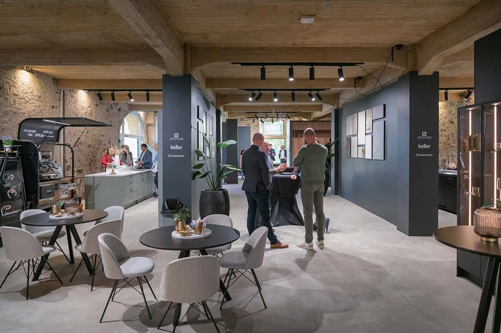 Ook dit jaar presenteerden Jetstone en Keller Keukens zich gezamenlijk tijdens de Küchenmeile. Op landgoed Gut Böckel richtten de bedrijven het sfeervolle Haferhaus in als een inspirerende showroom. In de prachtige entourage vond de enorme toeloop aan bezoekers er onze nieuwste trends in werkbladen (in samenwerking met composietmerk Caesarstone) gecombineerd met de keukennoviteiten van Keller voor het komende seizoen.