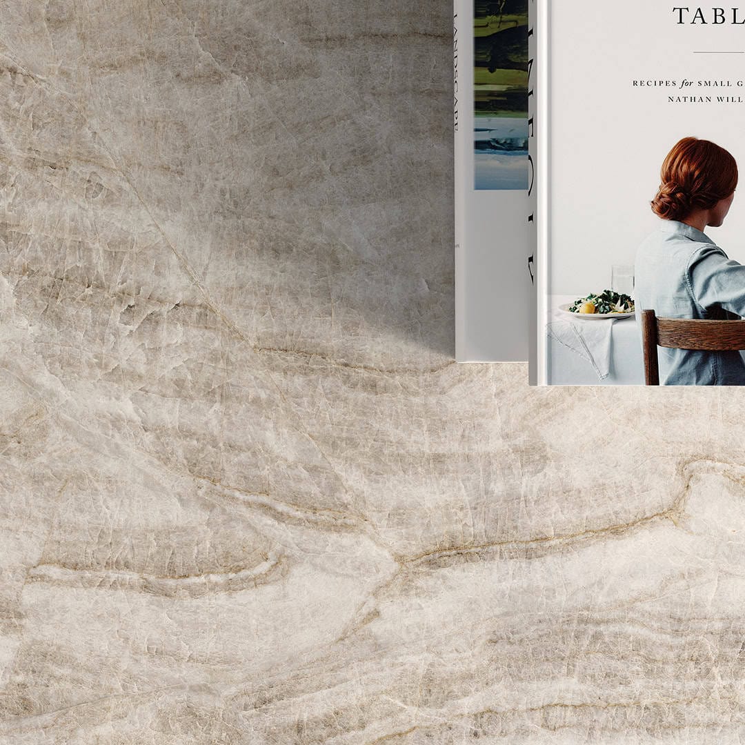 Deze zand-grijze kleur kenmerkt zich door de fraaie witte aders