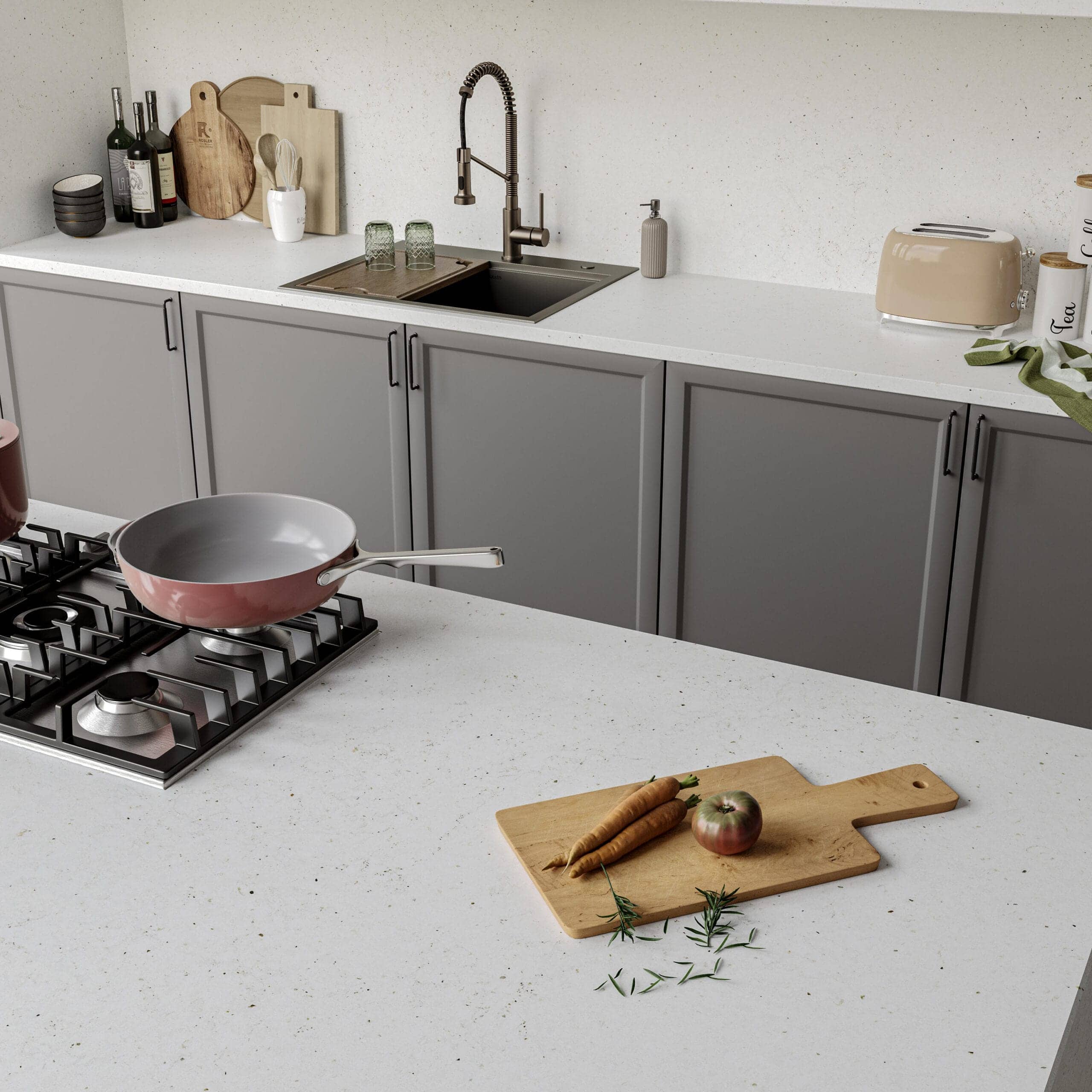 Steenachtige werkbladen zijn in het algemeen zeer duurzaam en praktisch in gebruik. Eigenschappen kunnen echter verschillen per materiaalsoort en per oppervlakte (gepolijst, gezoet, satin, gevlamd). In de video laten we zien hoe je een werkblad van composiet het beste kunt onderhouden, en wat je kunt doen om eventuele vlekken te verwijderen.